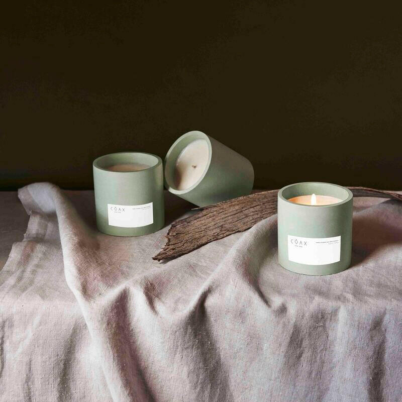 Project Coax 恬靜湖水綠水泥杯蠟燭 - 白樺樹/椰子/帕洛桑托 9oz