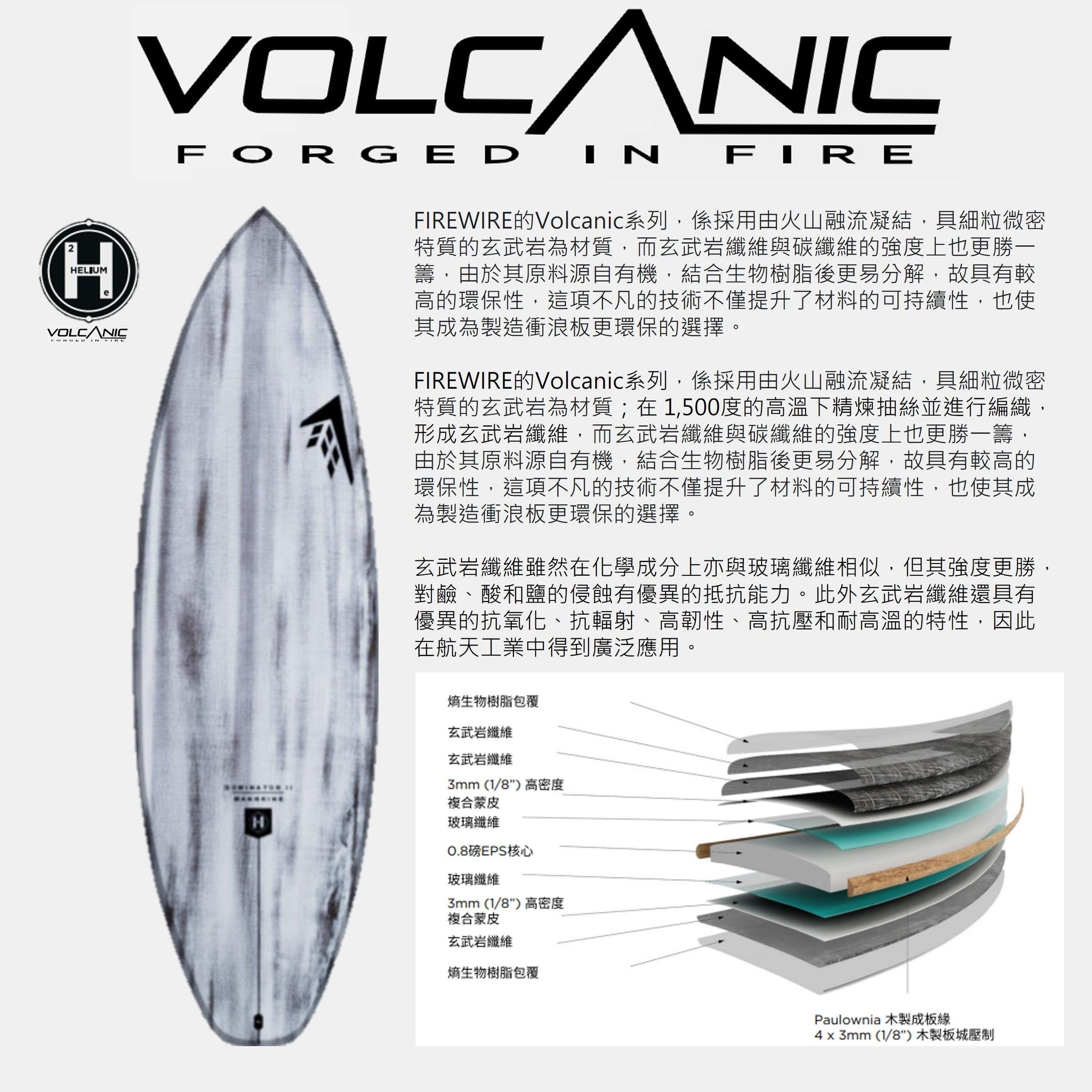 VAST 獨家代理FIREWIRE 2023 全新的材質Volcanic系列,以火山岩中萃取出來的玄武岩纖維,來製作成衝浪板。