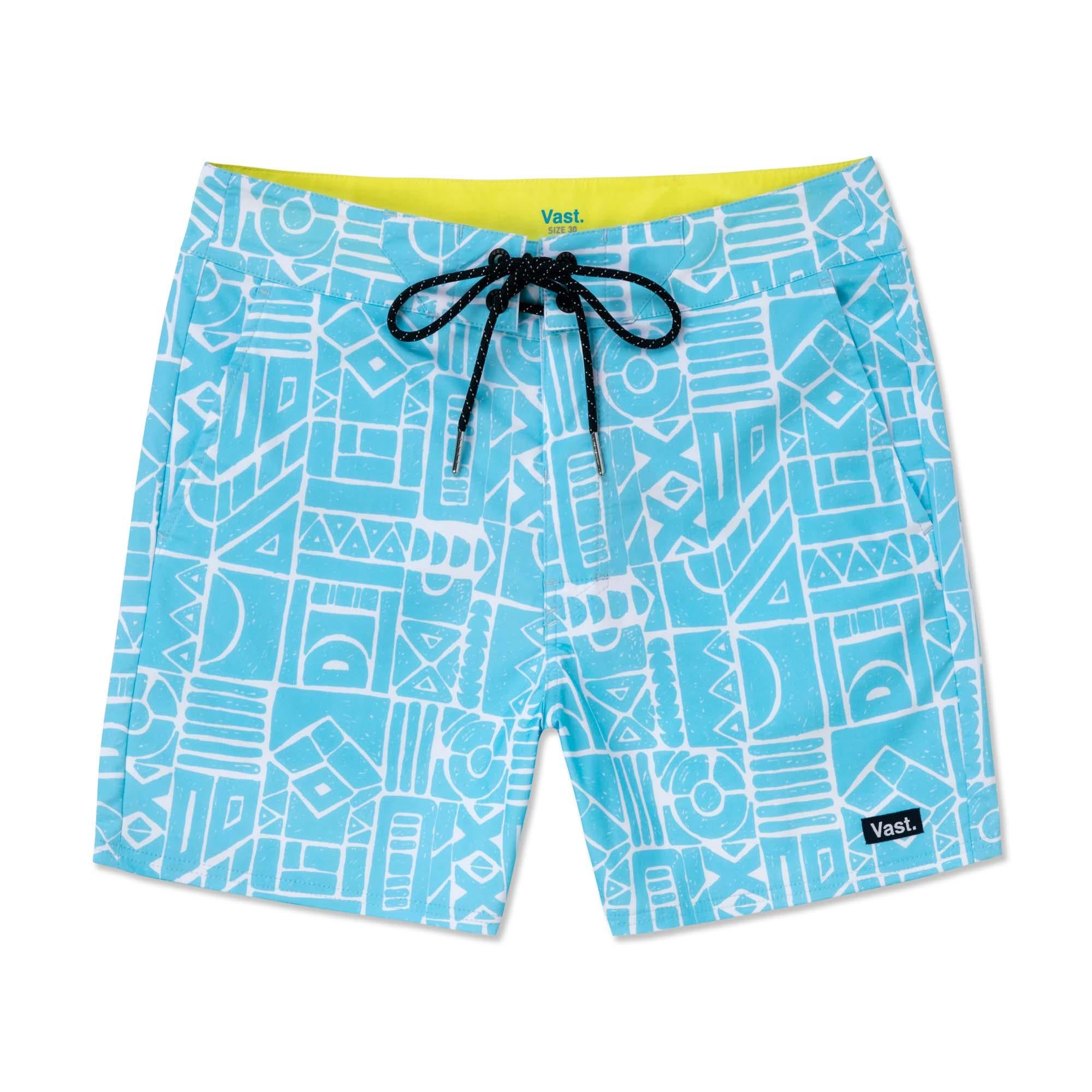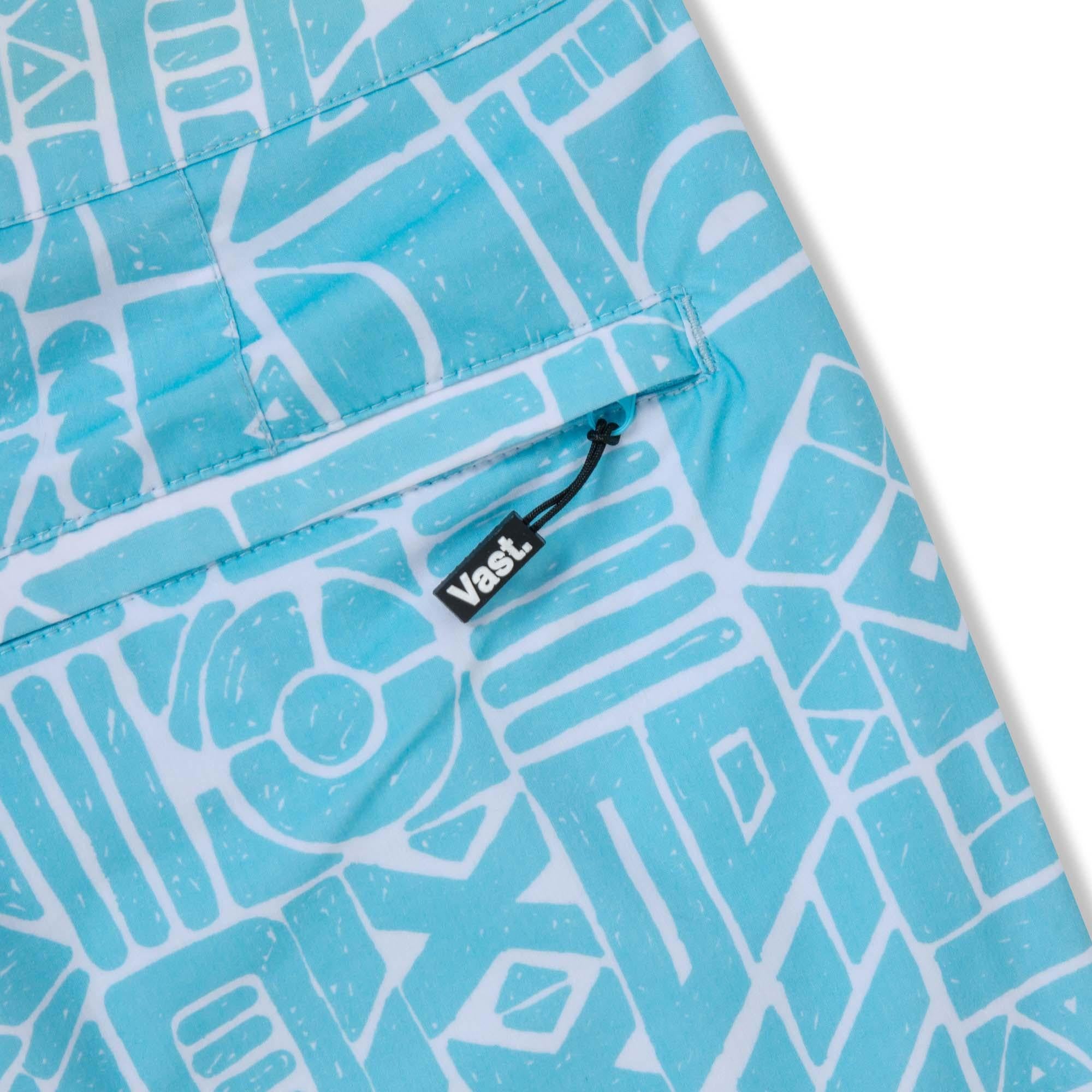 VAST 非洲幾何圖騰復古短版衝浪褲- 天空藍