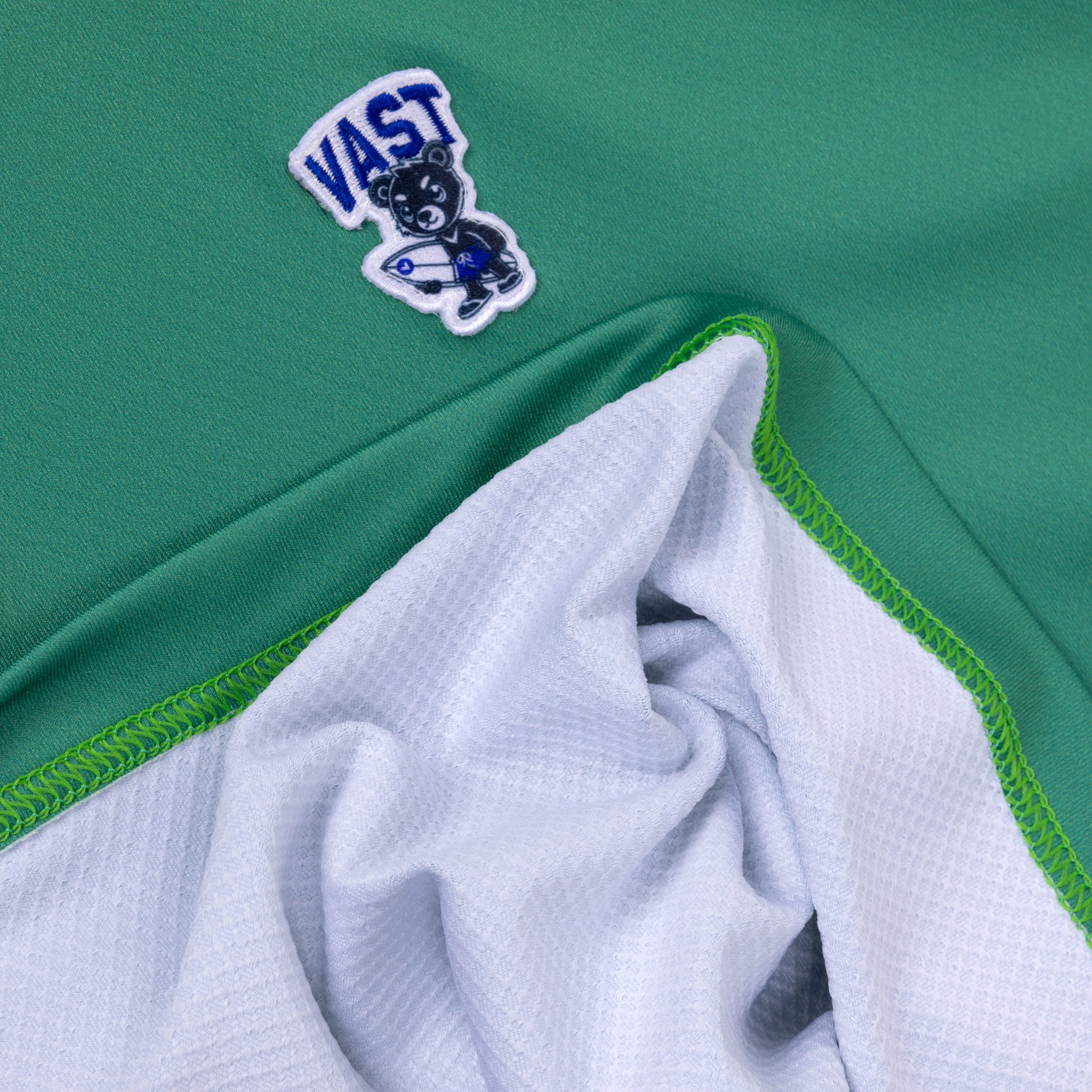 這款經典版型(Classic Fit)的科技機能 Polo 衫,採用沉穩百搭的海軍藍&質感綠設計,搭配胸前獨具巧思的 VAST 衝浪熊標誌布章,無論是日常休閒穿搭還是戶外活動,都能為您帶來極致的穿著體驗。
