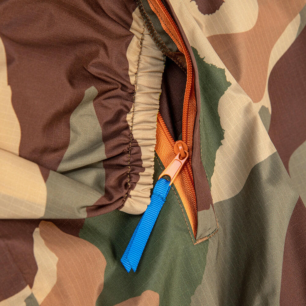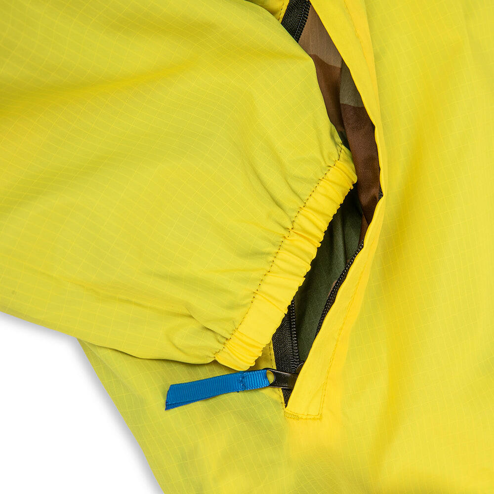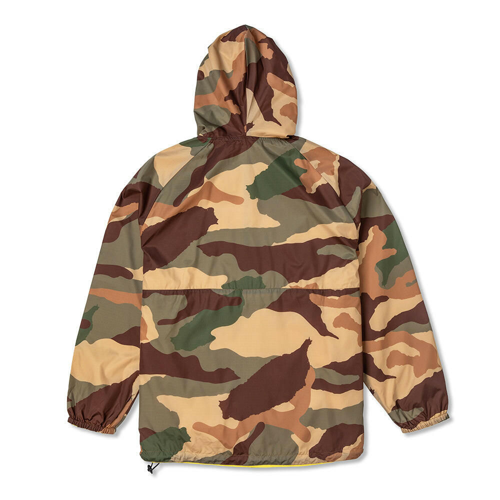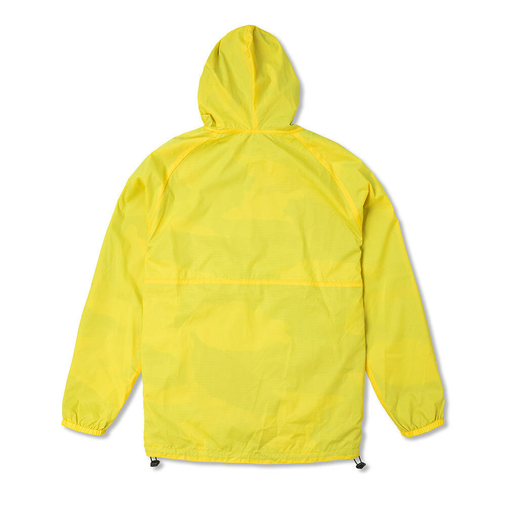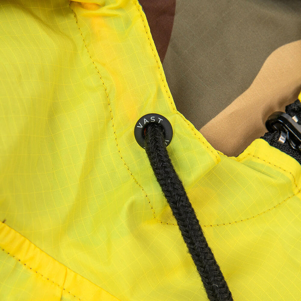 VAST 此款 可翻轉防風夾克一面採用迷彩印花設計,左上胸部織有圓形V標誌。另一面為純黃色,左上胸部印有VAST字樣標誌。