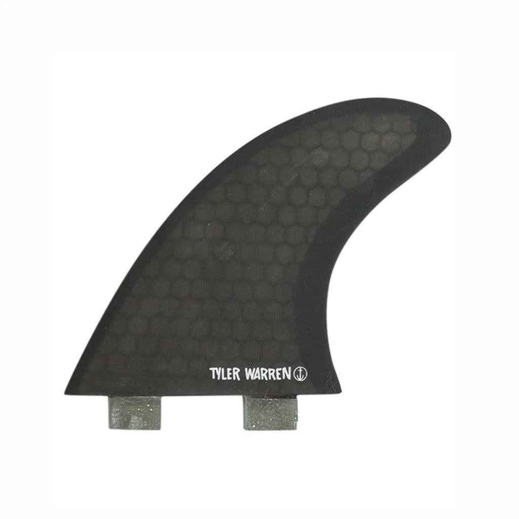 Designed by Tyler himself, the Tyler Warren Quad is as raw as it gets with a black resin tint to show off the honeycomb construction. Classic outlines with larger front fins for drive and hold with smaller trailers allowing you to really open up on those turns and sweeping cut backs.