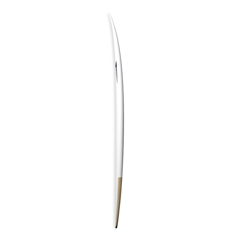 The obvious outline change is the tail going to a squash from the round tail. Also, the rails are slightly more refined and performance oriented. The concave is the same under the front foot but splits into a subtle, double-barrel and V out the tail in the last 5”. I normally look for a round tail to provide smoothness in transition from rail to rail and during turns, but the squash tail is proving to not only have that quality as well, but also a bit more release in the turns.