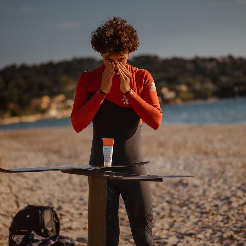 經ECOCERT®認證,取得COSMOS®有機標示,SPF50有機高效防曬乳可在陽光強烈的環境下使用.適合全家族使用,包含3歲以上孩童.此防曬乳擁有高延展性和覆蓋力,使用時會稍微顯白,依膚色而異.防水性極強的物理性防曬,其配方適合水上活動使用,植物萃取的有機成分,對海洋環境無害.木質調和香草香氣來自100%植物萃取.