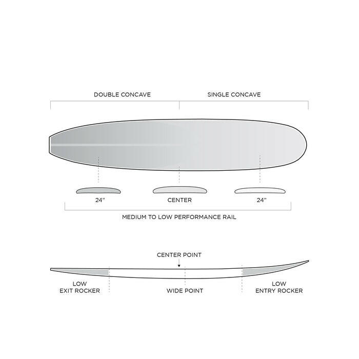 板底採用寬大的單凹槽設計和方尾設計,使轉向更加簡潔俐落。Singleton可讓浪人職業選手般,輕鬆完成 Hang10 的動作。前方的寬點增加了板頭的穩定性,而方尾的凹陷硬邊使底部加速和轉向變為俐落。