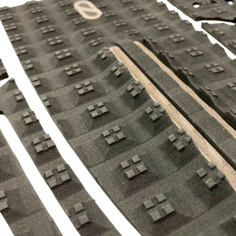 腳踏墊的寬度與3片式及5片式衝浪腳踏墊一樣寬,但這款的寬度較低。平行狹縫兩側的方形凹槽邊緣,提供不同於其他款式更多的足弓支撐,此款衝浪止滑腳踏墊完美提供了在轉向中所需的咬浪能力,有效進行迅速轉向,並同時增加速度感。切口的獨特設計不僅加強了腳與浪板之間的緊密連結,更提升了控板的穩定性。
