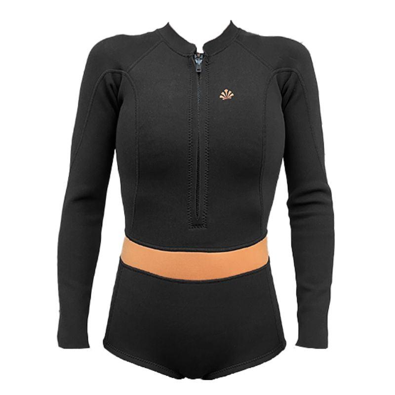 Saint Jacques 3/2mm Jade 女前拉鍊式半身長袖短褲衝浪防寒衣 - 黑底夕陽橘 (限定款)