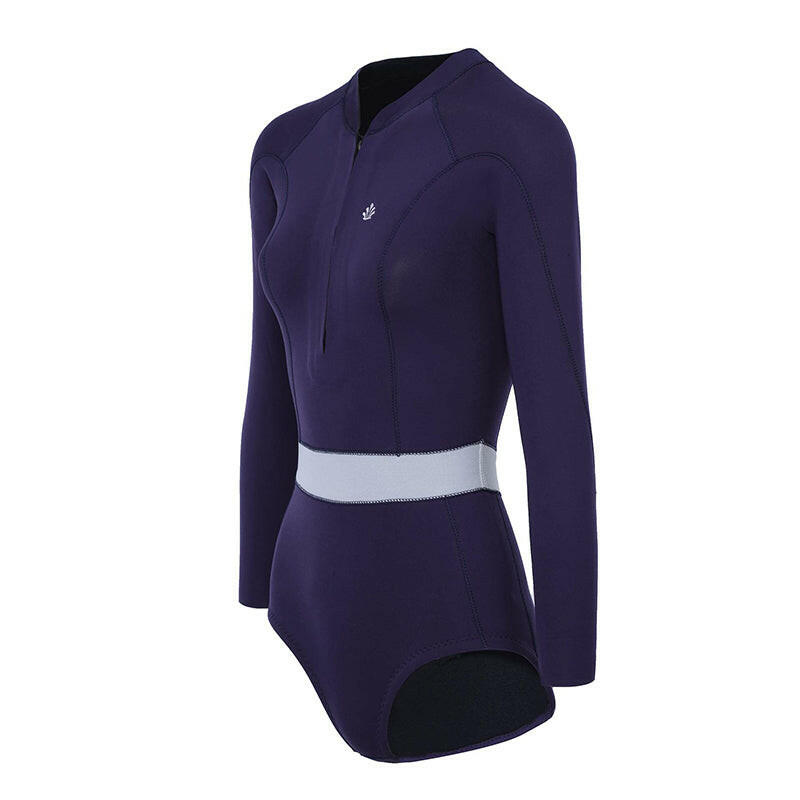Sober, elegant with its old school belt, Jade is a neoprene long sleeve shorty for women. Thanks to its long Front Zip, you can put it on in less than 10s.