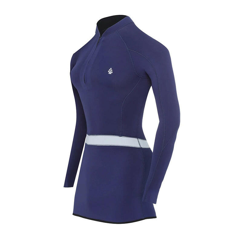 使用2/3mm的石灰岩超彈性氯丁膠材質製成,該產品融合了精緻的外觀和技術性能,具備良好的保溫性能,此款為長袖設計,配有21cm的前拉鍊,可根據溫度、胸部大小和個人喜好進行深度和可調節的領口設計。