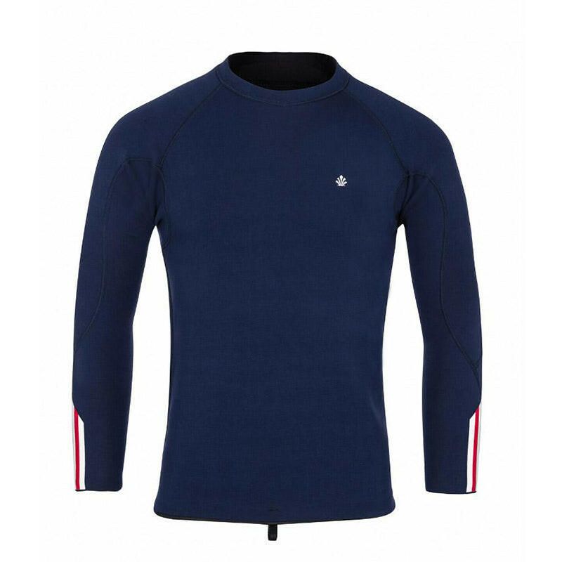 這款2mm超彈力石灰岩氯丁橡膠長袖上衣,穿著起來像穿一件長袖毛衣般輕鬆,領口略微弧形,袖口和手臂上旋轉的接縫為您提供划水時的靈活性無拉鍊設計和Flatlock接縫工藝,從簡約設計的防寒衣中脫穎而出,優雅的觸感融合了技術性和獨特性為您提供保暖、防紫外線、抗刺激的效果。