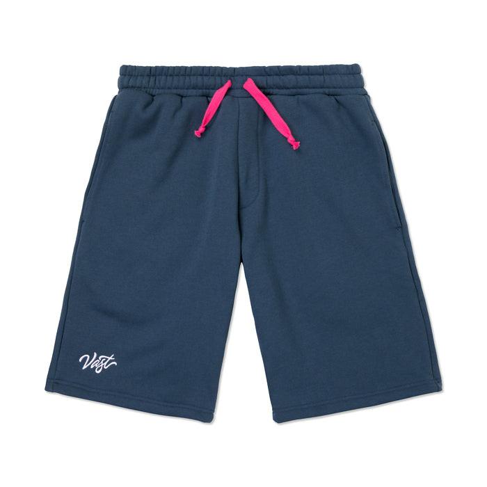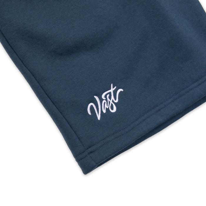 Keep it comfy and casual with our versatile 75% Cotton and 25% Polyester blend Sweat shorts. Relaxed fit, Vast Script logo on right thigh, side seams and a drawstring waist for custom fit, these shorts are the perfect lazy day option. Featuring two slash hand pockets, additional left pocket with zipper closure and back seat pocket for functionality. Available in Black and Steel Blue.