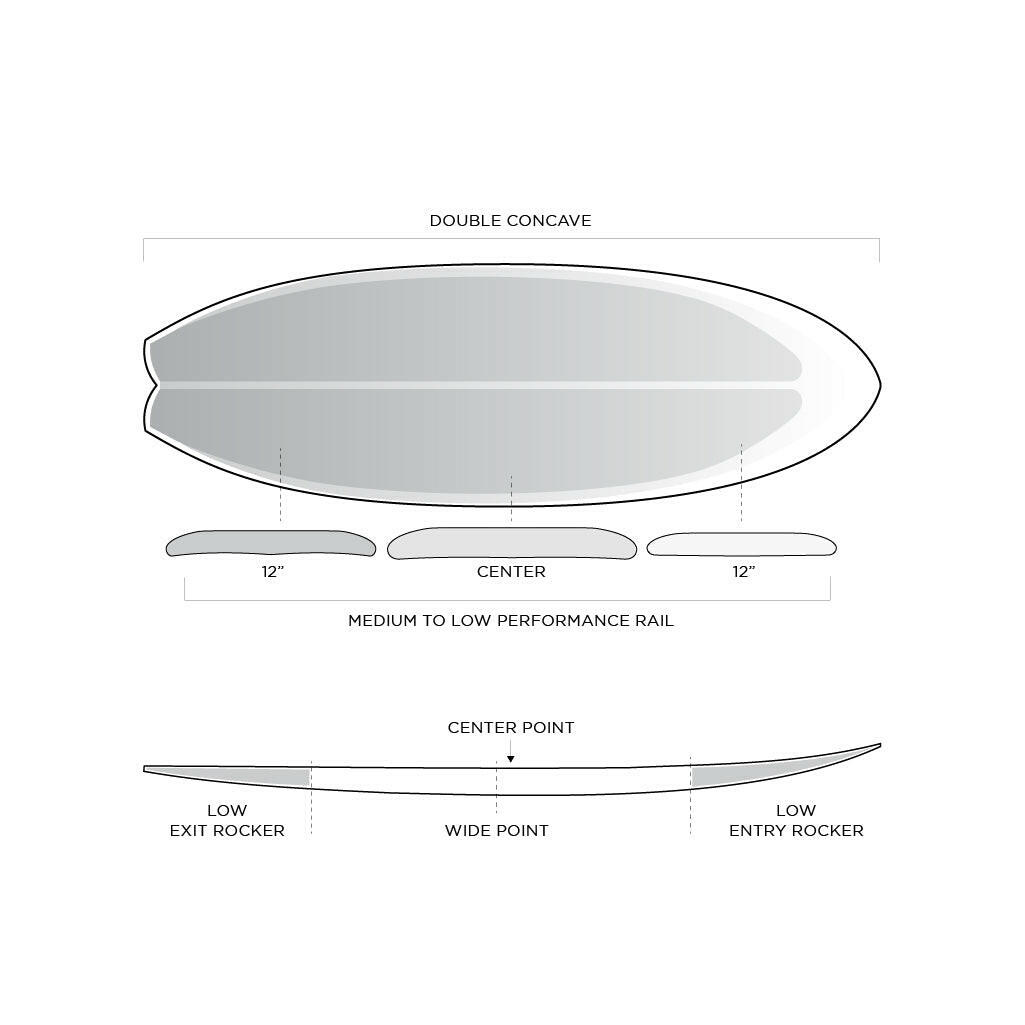 小浪板設計,好追浪、好划水,能讓你輕鬆追逐各種小浪況,板尾的設定是小燕尾,在起乘之後的狀況更加穩定,並帶有慵懶、舒服的韻律感。