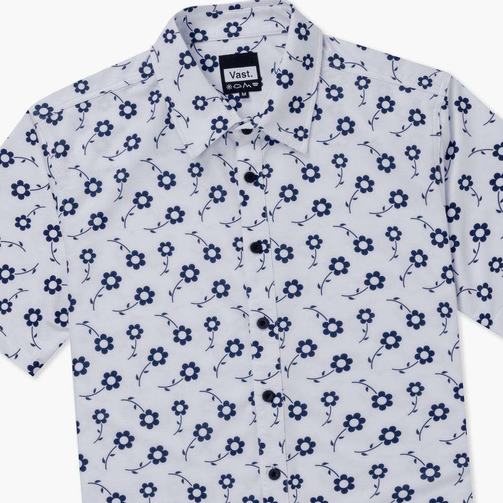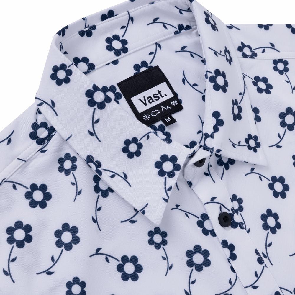 VAST 這款型格防曬機能 Positive Floral Surf Shirt 衝浪襯衫,以純淨的白色為基底,綴以深藍色花朵,仿若漫步在地中海畔花園之中;清新花卉的設計靈感來自於自然的生生不息,彰顯出平衡與和諧的美感。這正是 VAST 所秉持的 "Nature always wins" 理念,對自然之美的致敬,讓每位追浪浪人身臨其境地感受大自然的美好。