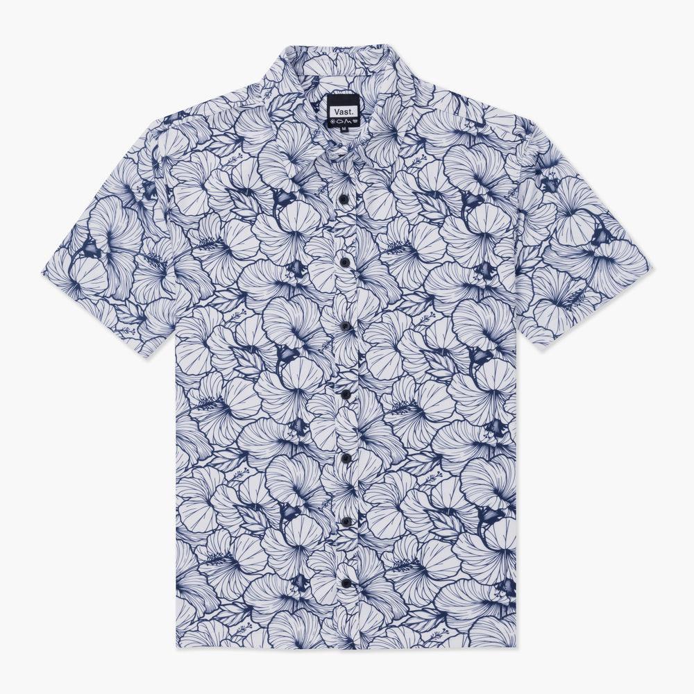 VAST 這款型格防曬機能 Hi Biscus Surf Shirt 衝浪襯衫,以熱帶島嶼度假天堂的經典木槿花圖案為靈感,綻放的熱帶花卉印花,營造出陽光灑落的熱帶島嶼氛圍,即便穿著者即便身處於繁忙的都市生活,也能立刻感受到度假的輕鬆與愜意。