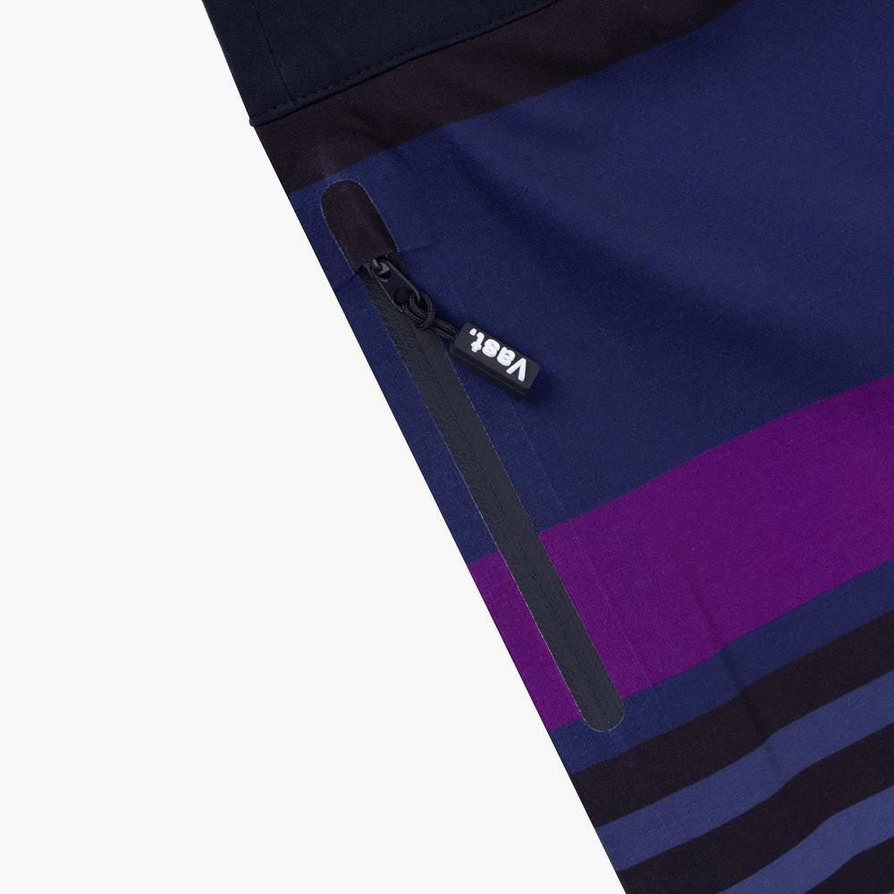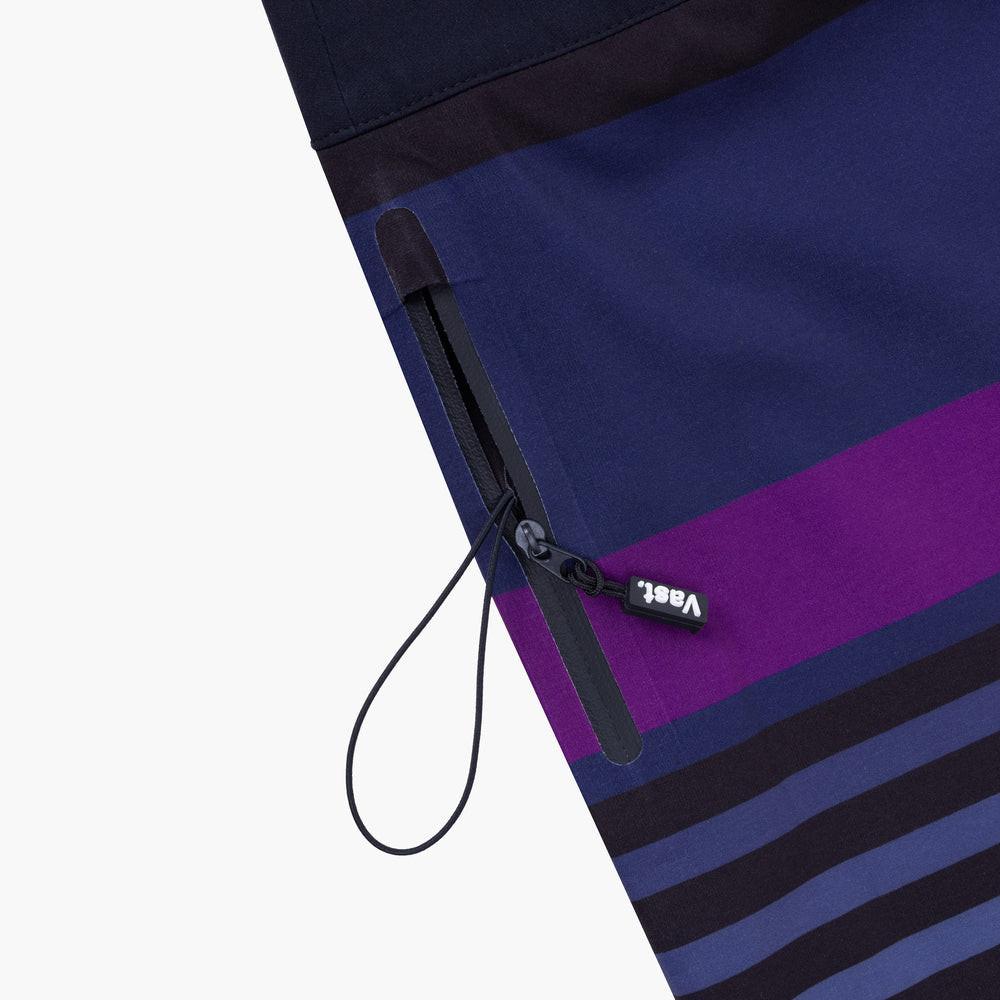 VAST此款 Gooch Stripes 銅系列機能衝浪褲 - 摩登漸層,以復古未來主義的 Synthwave 為設計靈感,採用暗沉都市感的黑色底襯,印上強烈霓虹炫光的線條,在強烈的色彩對比下產生華麗卻破滅的衝突感;整件褲款以18無車縫技術結合環保快乾布料,減少肌膚摩擦提高穿著舒適感;再搭配創新褲腰頭防滑矽膠條及拉鍊置物口袋跟易調節鬆緊的束繩設計,陪伴浪人在陸地上使用蠟塊打蠟又或者是在海上乘浪、追浪的任何時光。