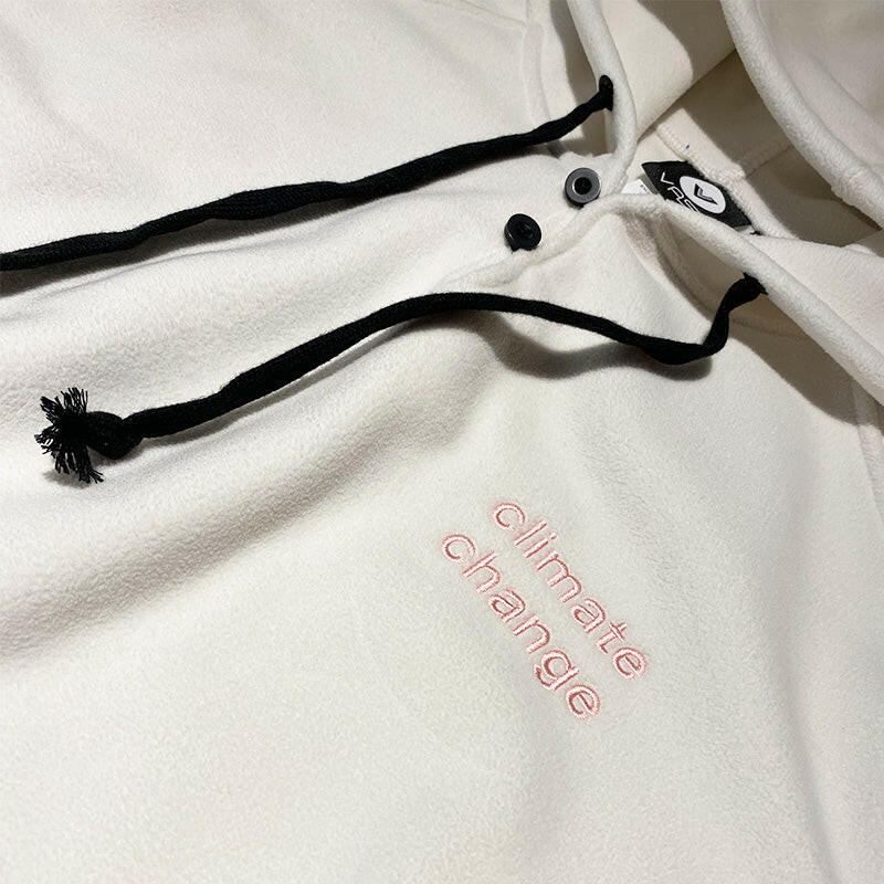袖口分別綴以 Climate Change 刺繡,隱含著 "Nature always wins" 及守護環境的重要,讓下一代也有機會向當年那美好年代致敬的寓意。