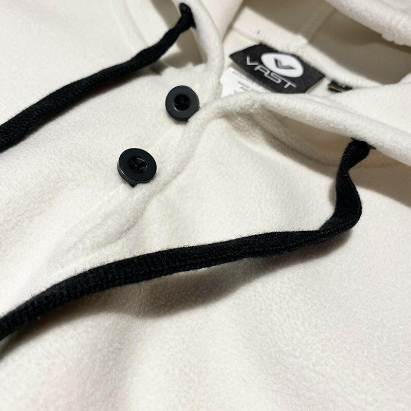 VAST 保暖連帽長袖上衣,是衣櫃必備的現代風格休閒服裝,米白色調的基本色系展現出極簡主義的魅力,襟前亮眼白色 VAST Elements logo,不僅為整體造型增添一抹亮色,更彰顯品牌的經典風格與品味。