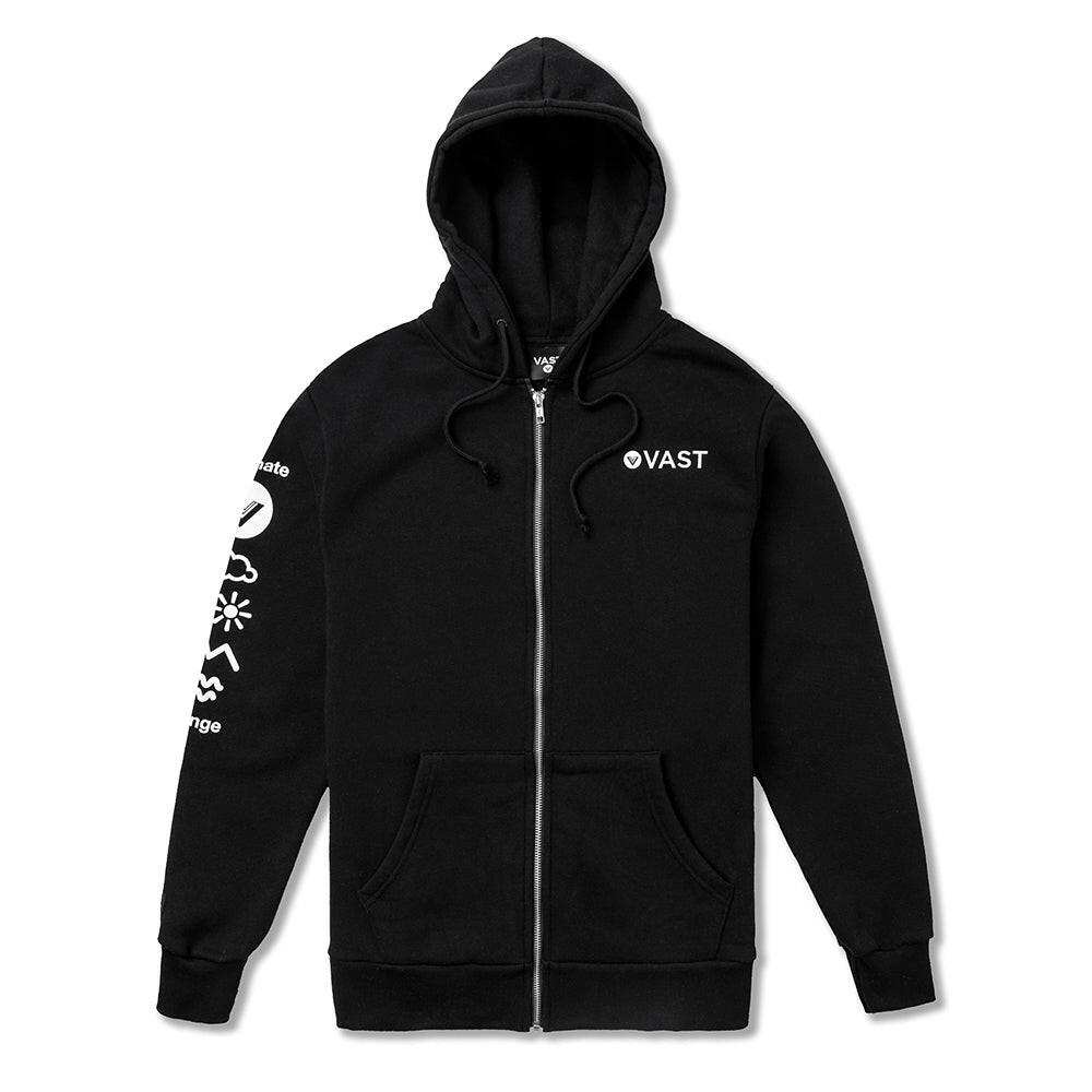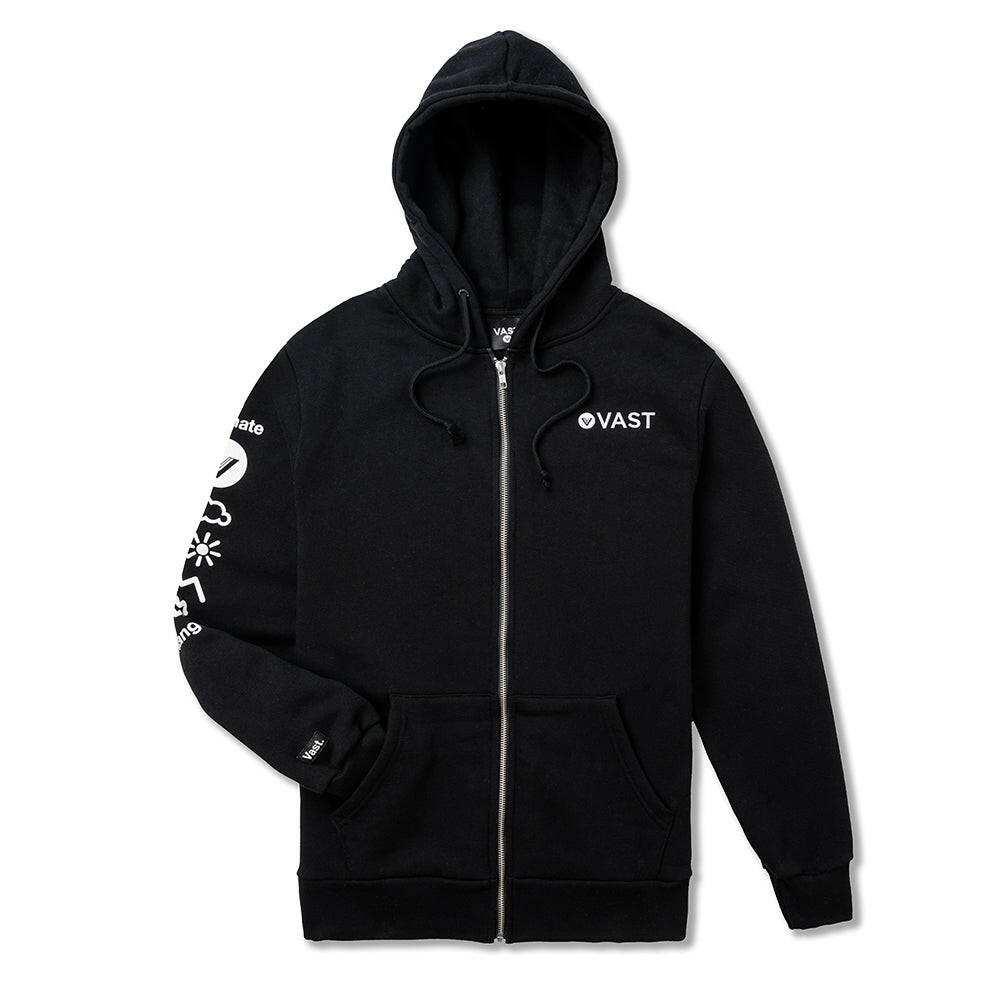 VAST 此款 Climate Change 拉鍊連帽外套,正面簡約設計在左胸前放上VAST Font logo。 右側袖上印有品牌精神自然元素圖標,表達我們對於大自然的崇愛,背後放大的Red Wave logo增加整體設計感這款連帽上衣採用 75%高級環錠紡精梳棉及25%聚酯纖維,有著優異的穿著舒適度;兩側皆有口袋設計,方便攜帶隨身物品。商品特色: