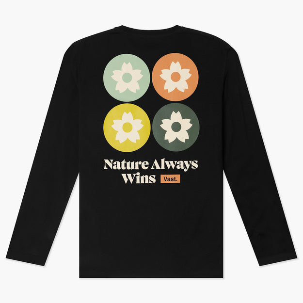 VAST 此款衝浪棉質長袖上衣,以經典櫻花為靈感,呈現出大自然永不止息的生命力。正面胸口的櫻花標誌搭配經典的 VAST logo;背面則展現四季變幻的櫻花圖案,象徵著季節的交替與生命的循環,並飾以 "Nature always wins" 標語戶應這個理念。這款T恤不僅適合日常生活穿搭,更是戶外踏青或岸上觀察浪況的最佳選擇。這款型格衝浪棉T以100%精梳棉打造而成,具有不凡的質感呈現和著用舒適度。