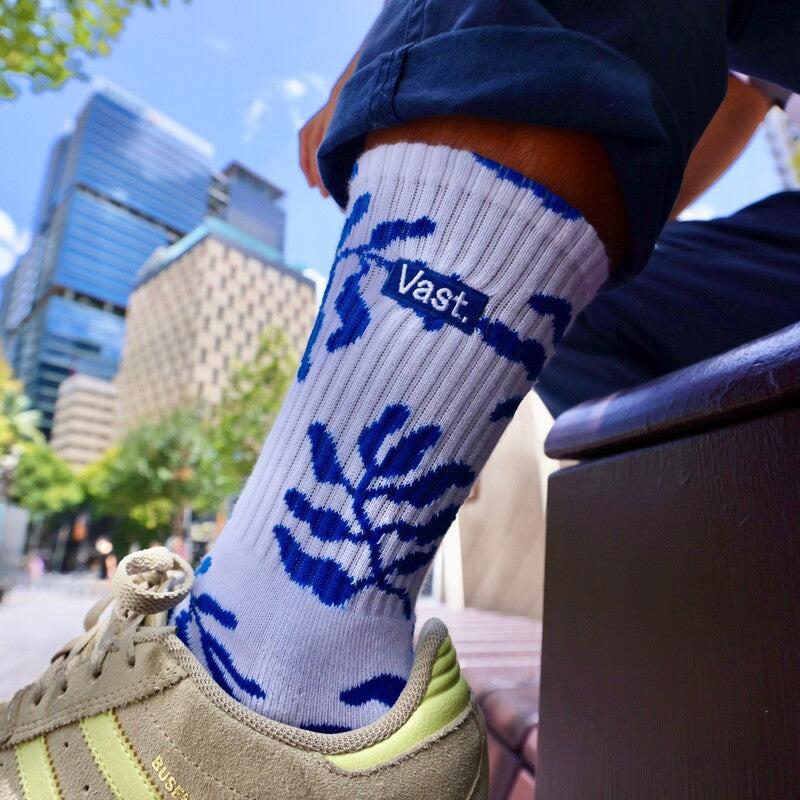 VAST 此款 Seaweed Socks 復古搖曳海草中筒襪以海中自在優雅擺盪姿態的海帶為設計出的復古長襪;同時為了呼籲Nature always wins 的理念及海洋保育的重要,這款襪飾上,以大洋靜謐的寶藍色來點綴VAST Block Logo,這款經典襪飾非常適合每位型格的追浪浪人前往衝浪的路途上、岸上觀察浪況時及日常或戶外活動時著用,此商品提供單一尺寸。