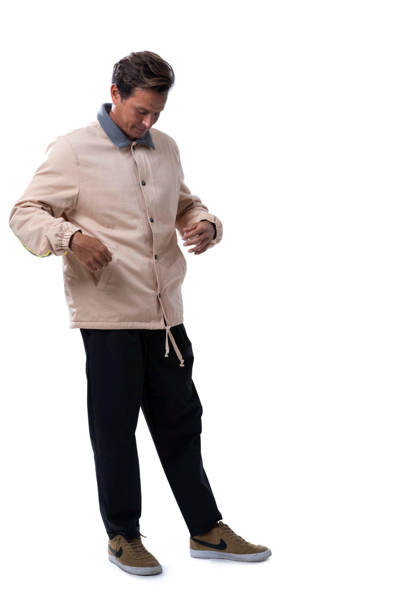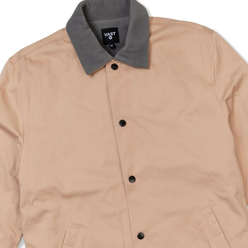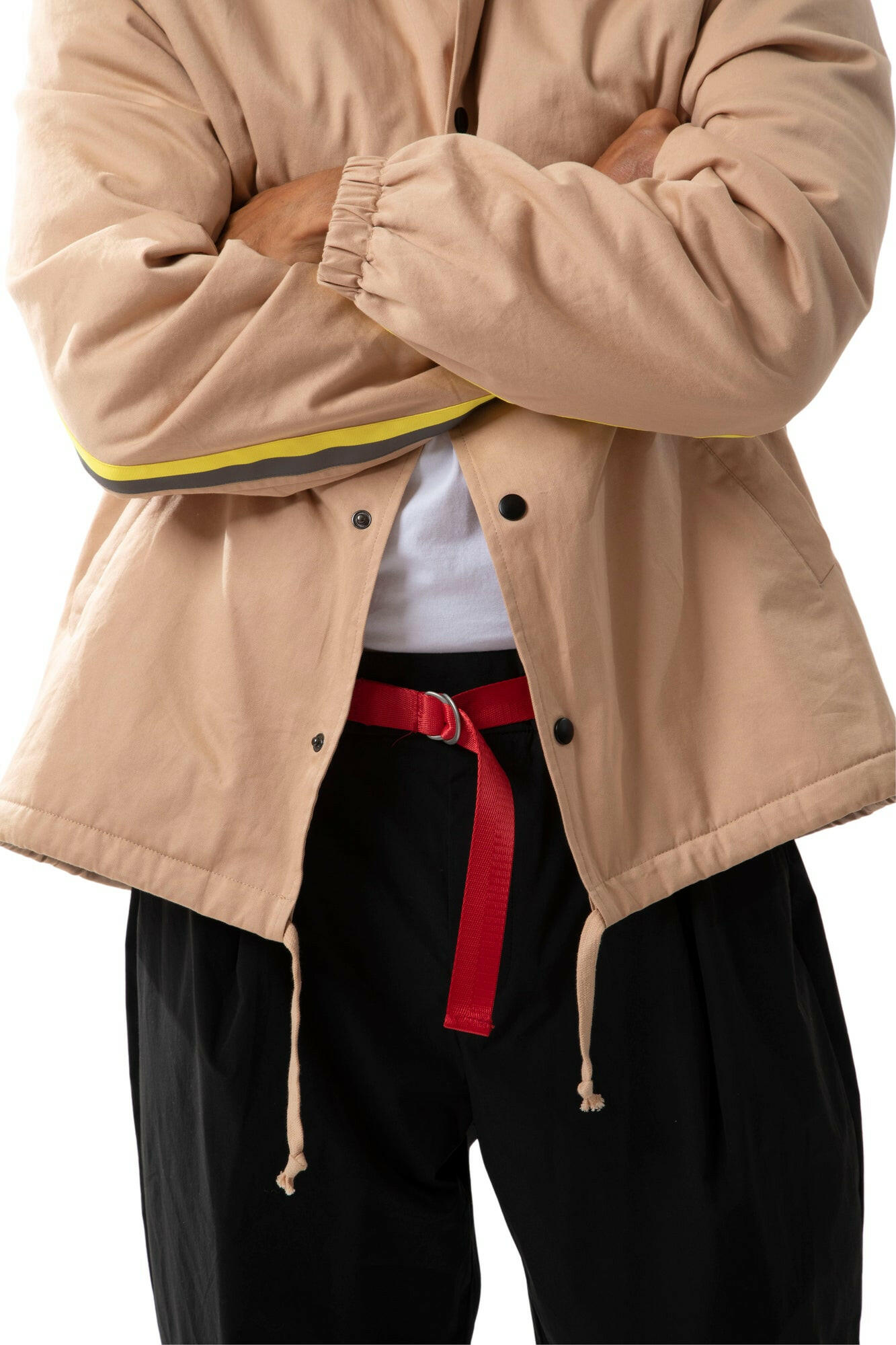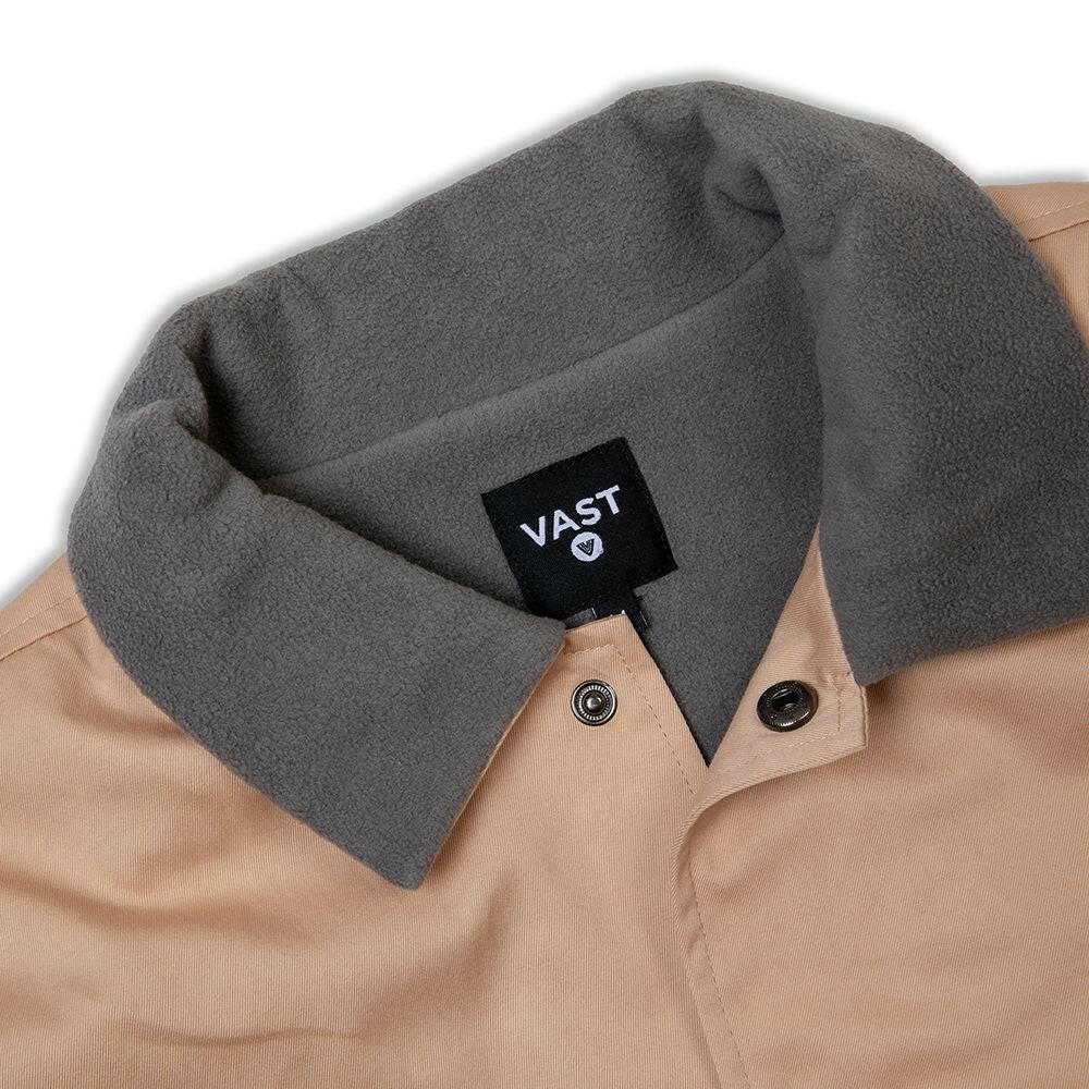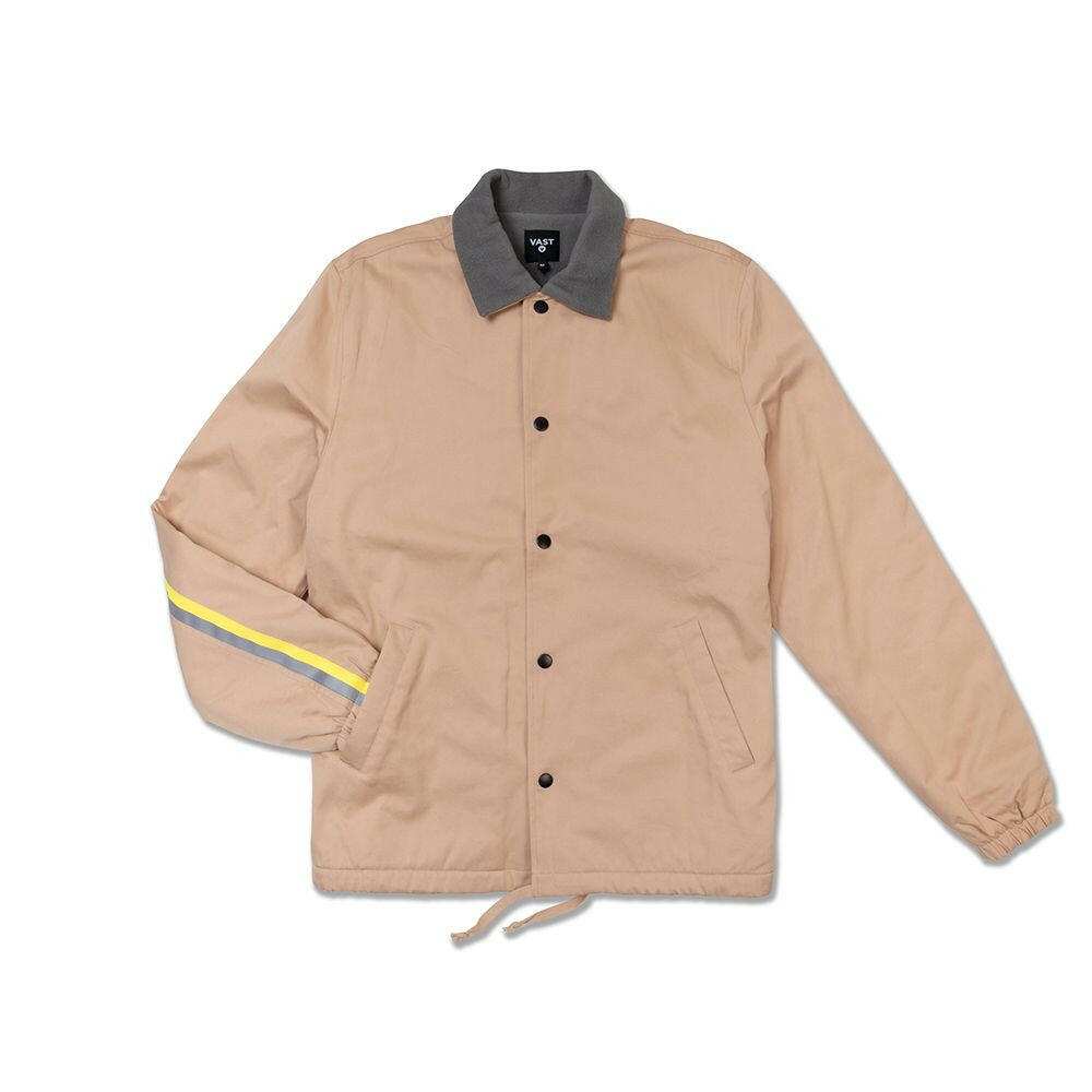 在逐漸轉涼的天氣之中,套上一件經典耐穿VAST Sherpa 夾克外套,襯衫領外翻的設計有一點美式復古的韻味,卡其配色簡約又耐看,轉過身在袖子上的條紋反光布料讓整體更有設計感,兩側附有斜插口袋,底部抽繩可隨喜好調整。
