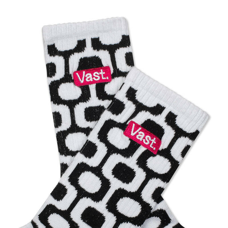 VAST 幾何印花 復古中筒襪的 TV-Head中世紀幾何圖案用於本季的襪子套組,為衣櫃增添亮麗色彩。