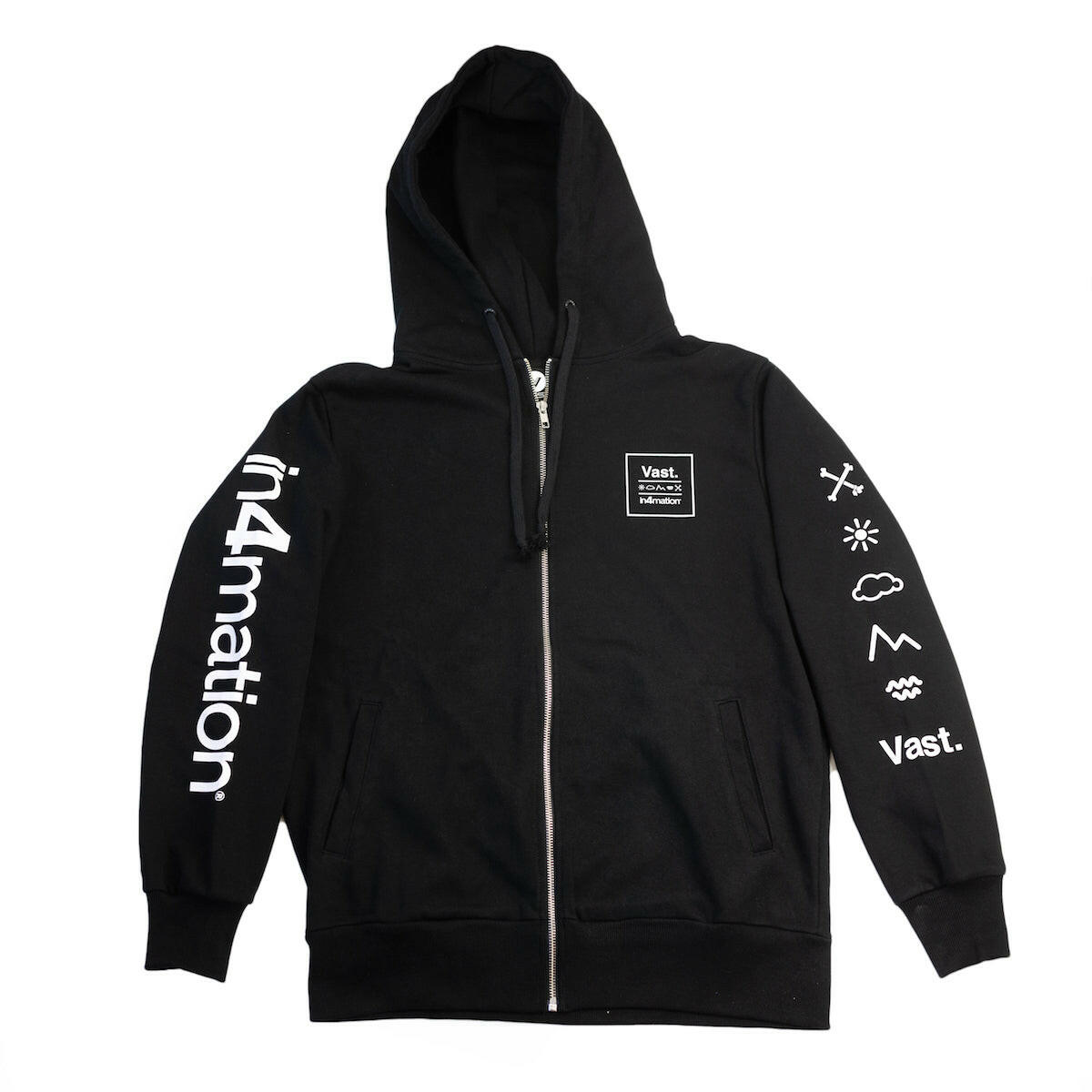 VAST 此款與 In4mation 聯名的連帽外套,右臂上有經典 In4mation 徽標,左胸部和後背有VAST x In4mation 方形徽標,寬鬆適中版型、袖口使用羅紋針織材質,是件達到舒適且兼具設計的單品。商品特色: